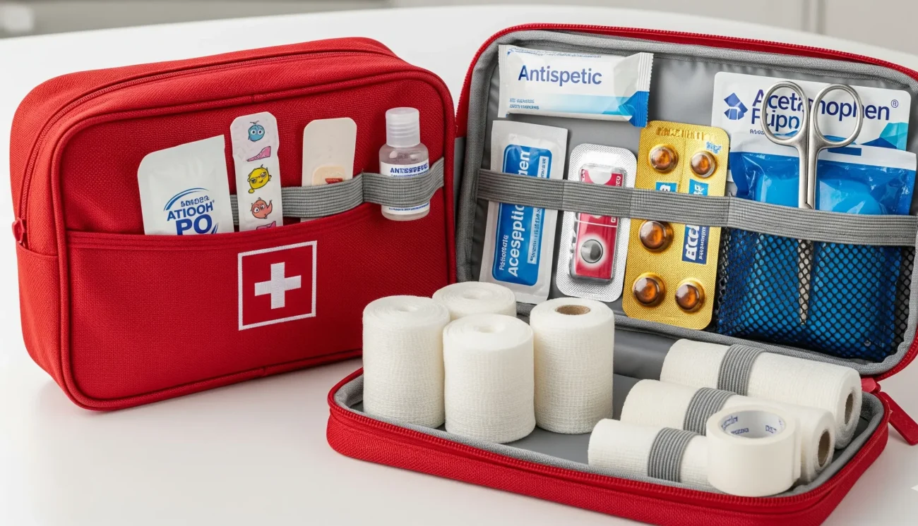 Here is what I carry at all times: a few bandages, some antiseptic wipes, pain relievers, against a headache or sore muscles. I also take allergy meds just in case, even if I do not normally take these — I may be able to share some with someone who really needs them.