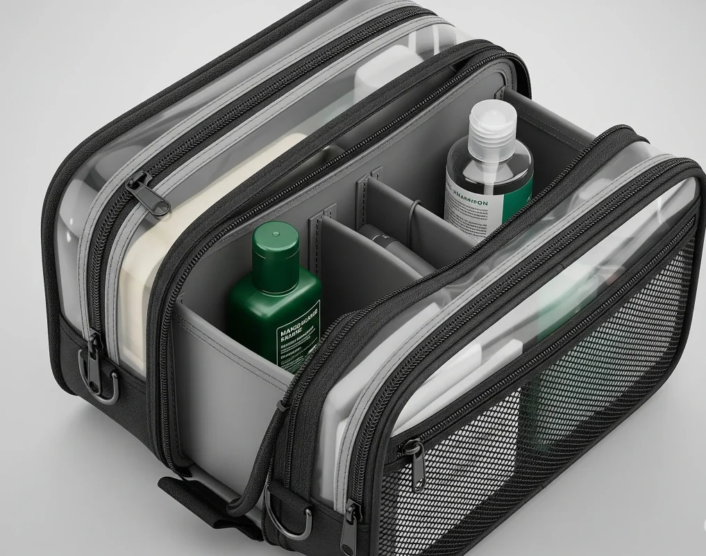 A decent toiletry bag, or Dopp kit, is your second line of defense. Select a bag that is waterproof on the inside and outside and has separate sections. Bags that have wipe-clean linings, zip pockets, and mesh dividers are the best.